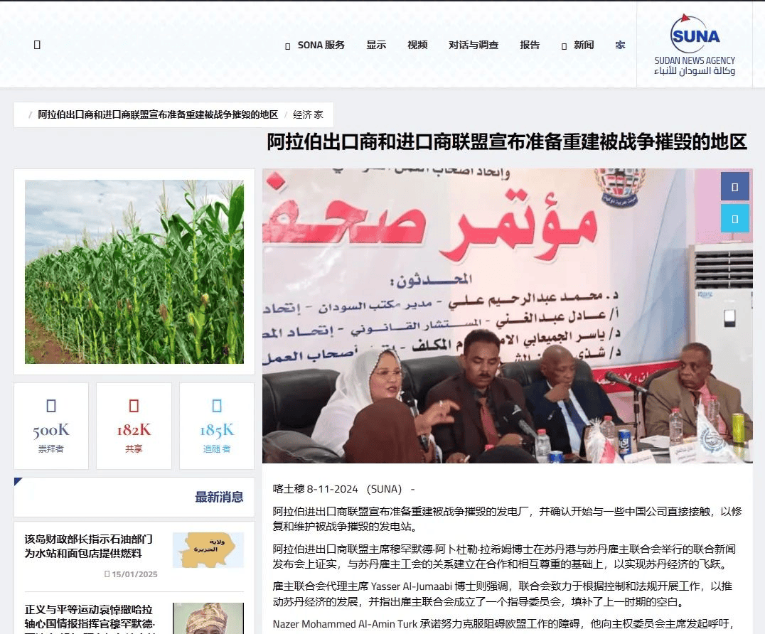 2024年11月8日,并已取中国公司联系修复受损电坐。结合会穆罕默德·阿卜杜勒·拉希姆暗示,取苏丹雇从结合汇合做旨正在推进苏丹经济成长。旧事担任人舒达·谢里夫,结合会曾正在多地实施沉建项目,阿拉伯进出口商结合会也将努力于消弭工做妨碍,鞭策苏丹经济苏醒。
