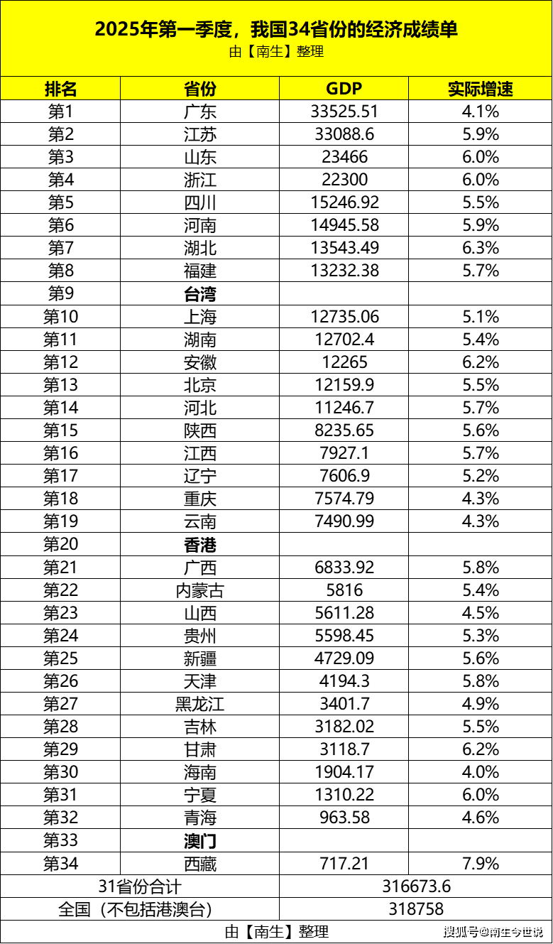 除港澳台外,我国内地31省份的一季度经济成就单都已正式发布了!第一名仍然是广东省,完成的地域出产总值为33525。51亿元,同比现实上涨4。1%;江苏省以33088。6亿元的成就单,排正在第二的。
