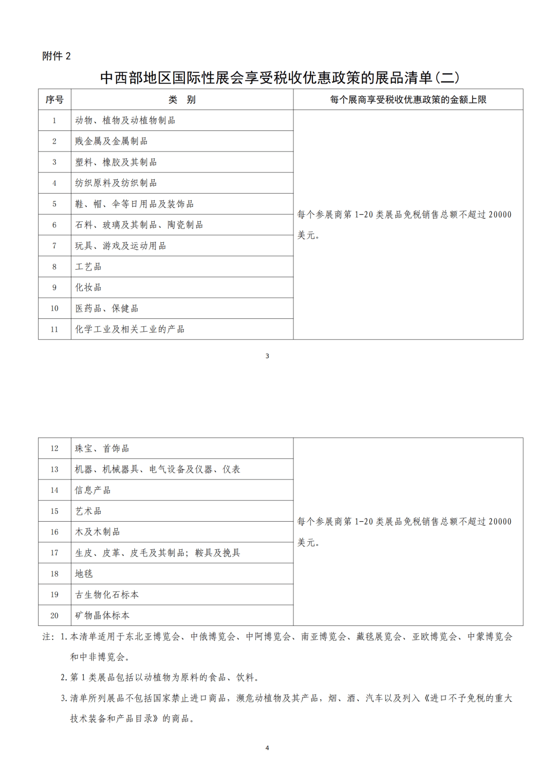 《财务部 海关总署 税务总局关于“十四五”期间部地域国际性展会展期内发卖的进口展品税收优惠政策的通知》(财关税〔2021〕21号,以下简称《通知》)。由展会承办单元或其指定单元做为境内收货人,确定参展企业名单及申请享惠展品清单,同一贯赛罕海关申请打点进口展品的申报和征减免税手续。部地域国际性展会展期内发卖的免税额度内的进口展品,免征进口关税和进口环节、减免税审核确认手续纳入减免税系统办理,征免性质为博览会留购展品(代码 707),监管体例为一般商业(代码 0110)。享受税收优惠的展品,应合适《通知》附件清单(二),且不包罗国度进口商品,烟、酒、汽车以及列入《进口不予免税的严沉手艺配备和产物目次》的商品。合适前提的企业可选择通过国际商业“单一窗口”或“互联网+海关”()门户网坐向从管海关申请打点减免税审核确认手续。2。 展会承办单元或其指定单元确定的参展企业名单及展期内发卖申请享受税收优惠政策的展品清单。